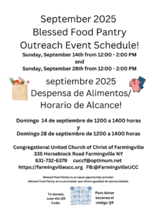 La Despensa de Alimentos Bendecida, ubicada en 335 Horseblock Road, Farmingville, abrirá el domingo 10 de agosto de 12:00 PM a 2:00 PM para todas las personas que necesiten asistencia alimentaria. Habrá una variedad de productos frescos, leche, huevos, carnes y pescados congelados, y alimentos enlatados. Blessed Food Pantry es un proveedor de alimentos que ofrece igualdad de oportunidades y una agencia miembro de Long Is